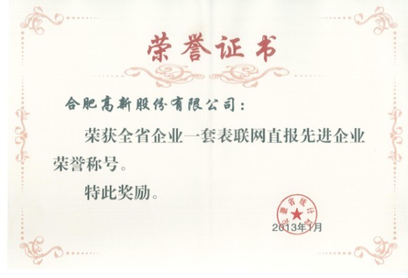 2012年度安徽省企業(yè)一套表聯(lián)網(wǎng)直報先進企業(yè)