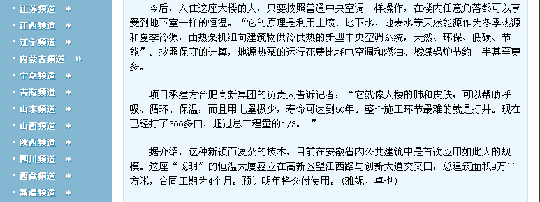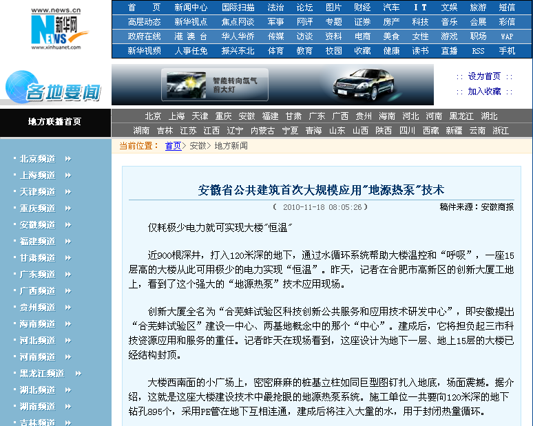 新華網(wǎng)--安徽省公共建筑首次大規(guī)模應(yīng)用"地源熱泵"技術(shù)