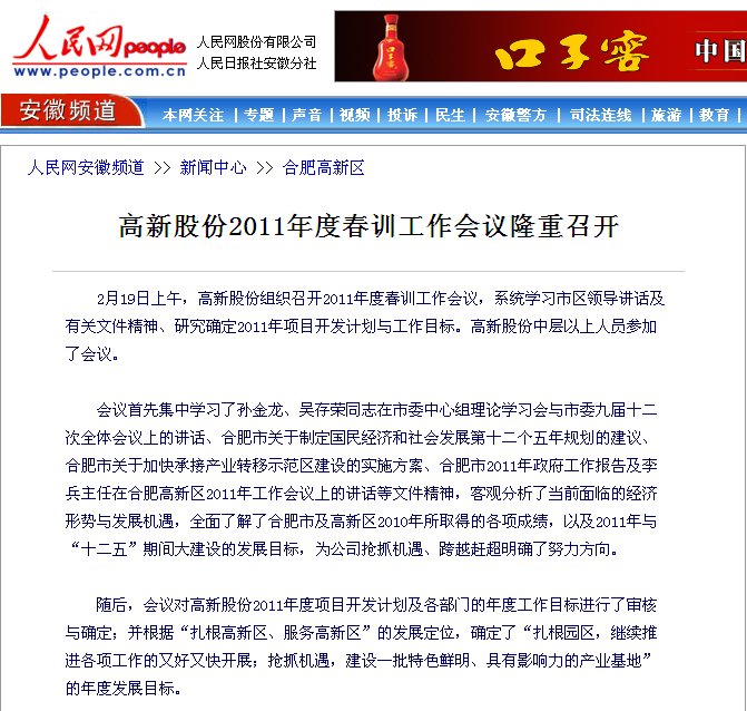 人民網(wǎng)-高新股份2011年度春訓(xùn)工作會(huì)議隆重召開(kāi)