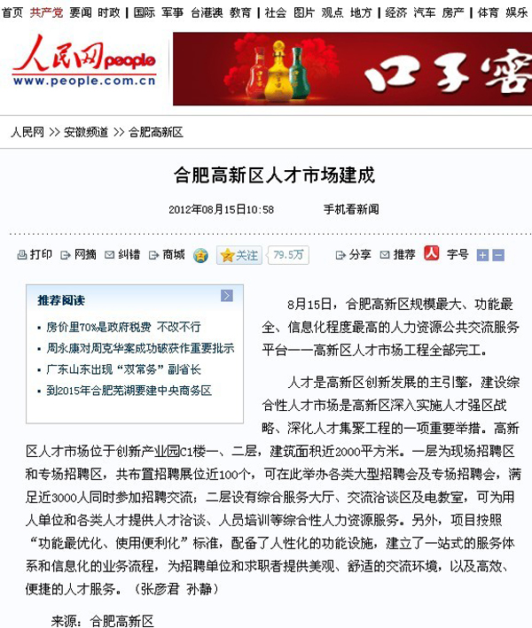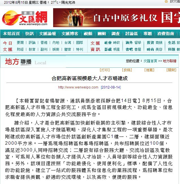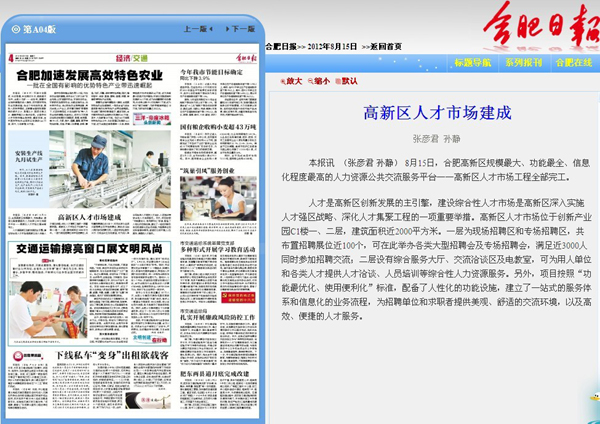 省市及海外媒體集中報道--合肥高新區(qū)人場市場建成