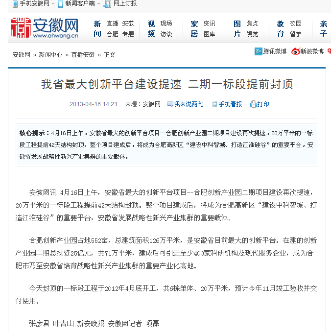 省市媒體集中報(bào)道創(chuàng)新產(chǎn)業(yè)園二期一標(biāo)段封頂