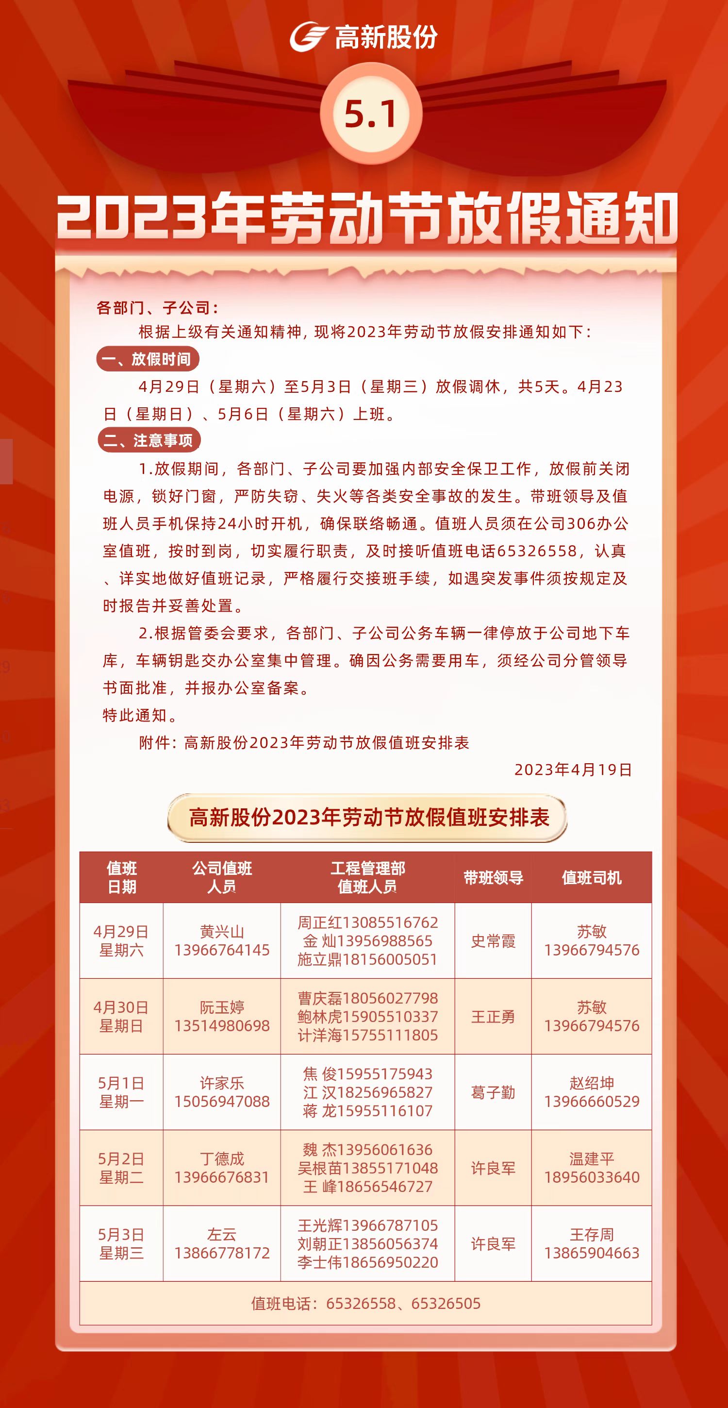 關(guān)于2023年勞動節(jié)放假安排的通知