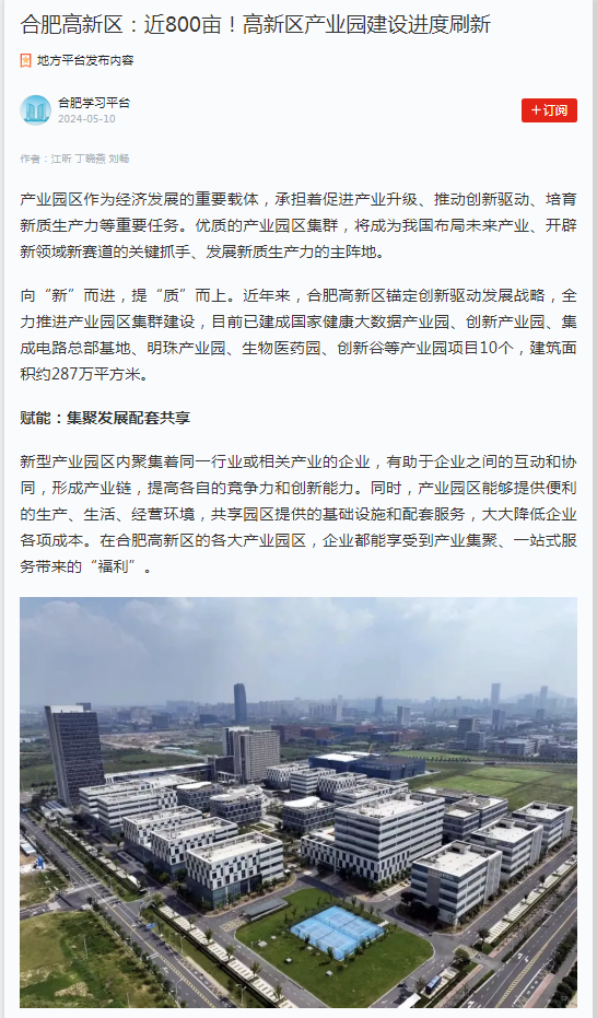 新型產(chǎn)業(yè)園區(qū)內(nèi)聚集著同一行業(yè)或相關(guān)產(chǎn)業(yè)的企業(yè),有助于企業(yè)之間的互動(dòng)和協(xié)同,形成產(chǎn)業(yè)鏈,提高各自的競爭力和創(chuàng)新能力。同時(shí),產(chǎn)業(yè)園區(qū)能夠提供便利的生產(chǎn)、生活、經(jīng)營環(huán)境,共享園區(qū)提供的基礎(chǔ)設(shè)施和配套服務(wù),大大降低企業(yè)各項(xiàng)成本。在合肥高新區(qū)的各大產(chǎn)業(yè)園區(qū),企業(yè)都能享受到產(chǎn)業(yè)集聚、一站式服務(wù)帶來的“福利”。