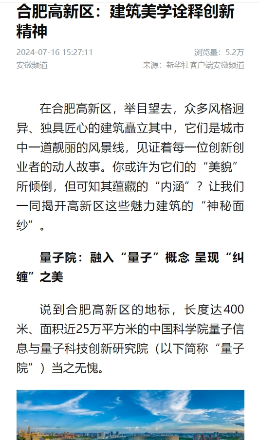 說到合肥高新區(qū)的地標,長度達400米、面積近25萬平方米的中國科學院量子信息與量子科技創(chuàng)新研究院(以下簡稱“量子院”)是當之無愧的核心。