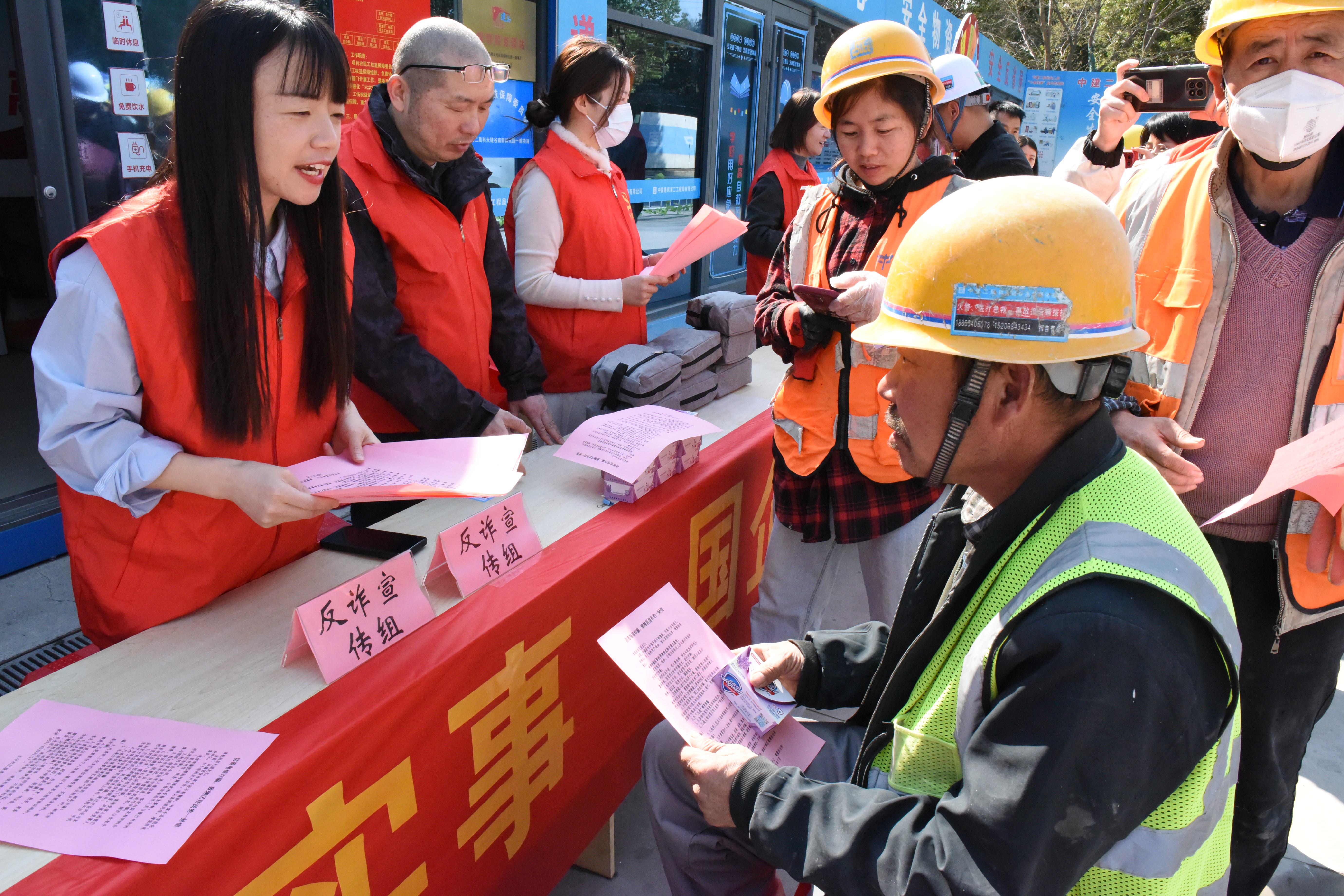 活動(dòng)現(xiàn)場(chǎng),“義診組”醫(yī)護(hù)黨員為工友免費(fèi)測(cè)量血壓、血糖,針對(duì)高血壓、糖尿病等慢性病提供專業(yè)指導(dǎo),并發(fā)放急救知識(shí)手冊(cè)80余份;“反詐宣傳組”通過(guò)典型案例剖析、互動(dòng)問(wèn)答等形式,向群眾揭露刷單返利、虛假投資等詐騙套路,協(xié)助下載“國(guó)家反詐中心APP”50余人次;“安全知識(shí)競(jìng)答組”設(shè)置安全題庫(kù)轉(zhuǎn)盤,圍繞施工安全、用電防火等內(nèi)容開展趣味競(jìng)答,發(fā)放肥皂、洗衣液等實(shí)用獎(jiǎng)品100余份,工友們熱情高漲,爭(zhēng)相參與。一名參與義診的工友表示:“在工地門口就能享受免費(fèi)醫(yī)療服務(wù),黨員們真是把實(shí)事辦到了心坎上!”